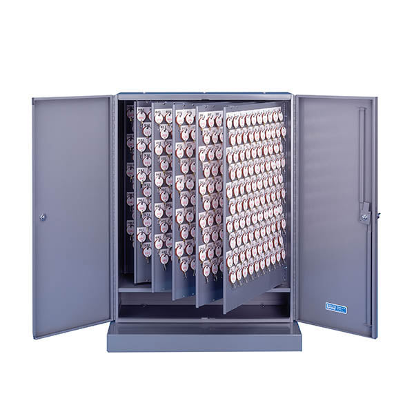 Lund 1800 double door key cabinets come furnished with the complete 2-tag system, 1-tag, or no tag system. The 1800 series houses 700-1200 hooks with the capability of holding 3-4 standard keys per hook. The cabinet is made from 18 gauge steel, with 20 gauge panels and a 3 point locking device.